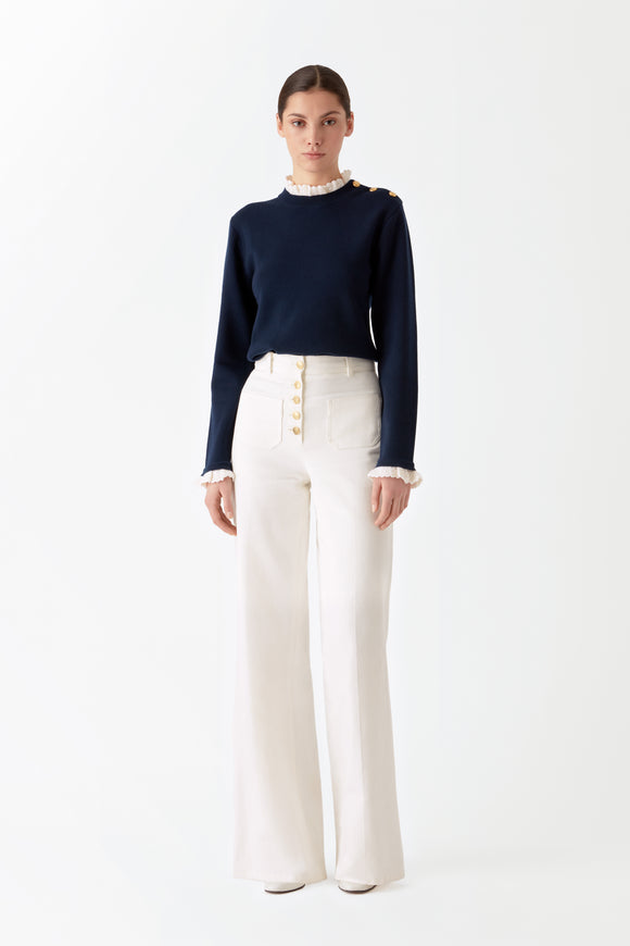 PRUNE - Chemisier blanc col Médicis en popeline de coton