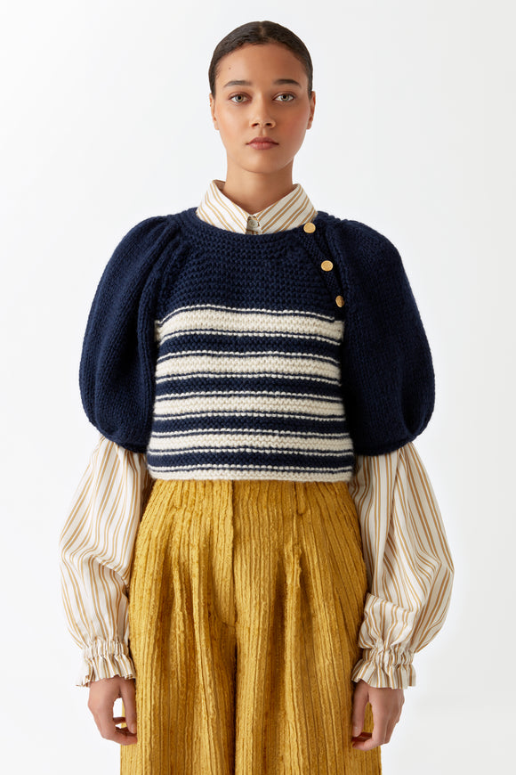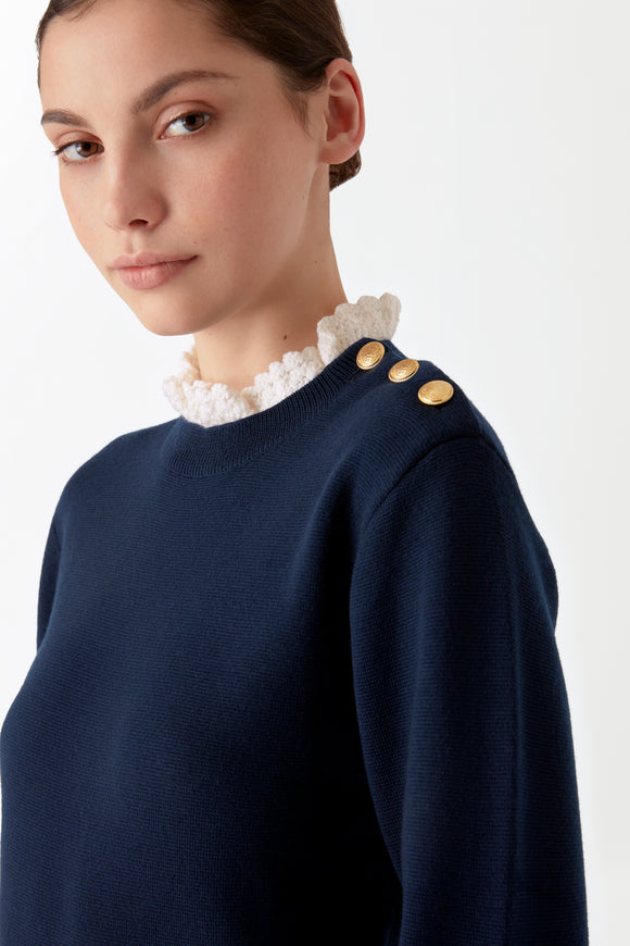 PRUNE - Chemisier col Médicis en popeline de coton bleu ciel