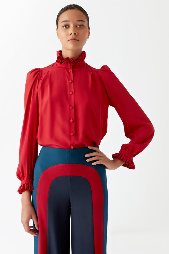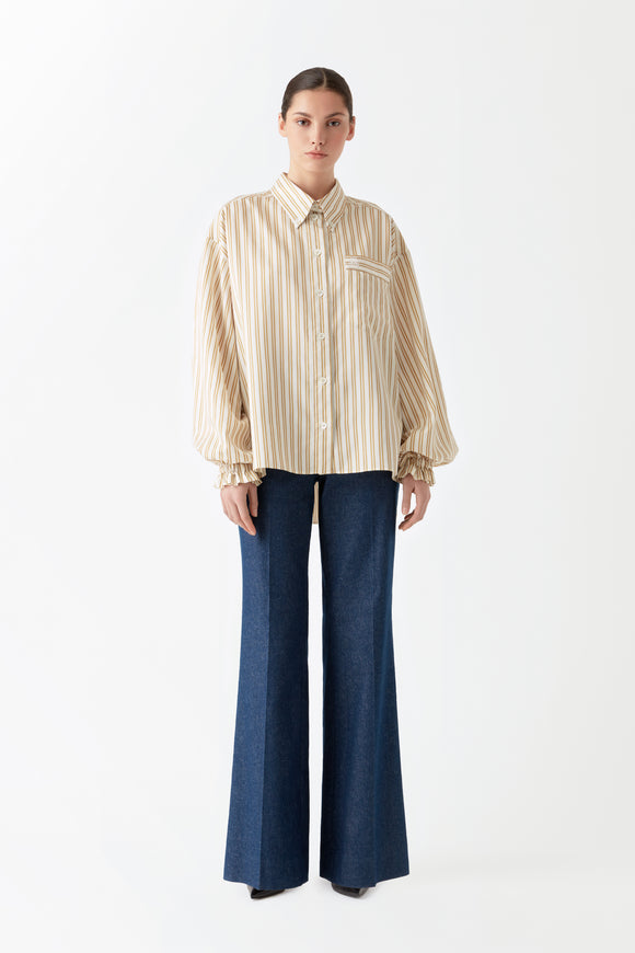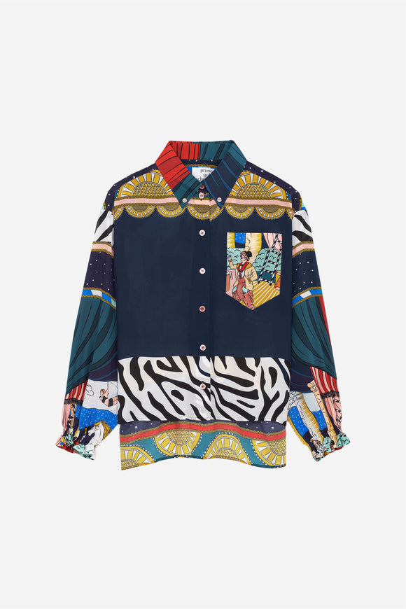 PRUNE - Chemisier col Médicis en popeline de coton bleu ciel