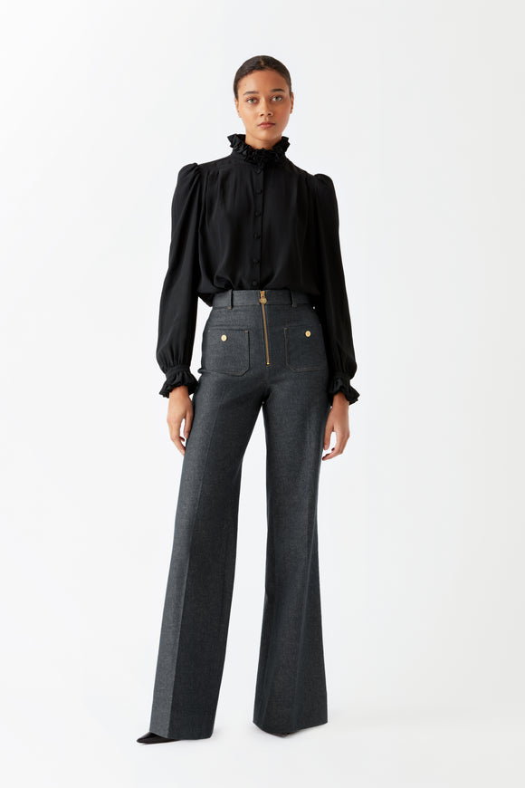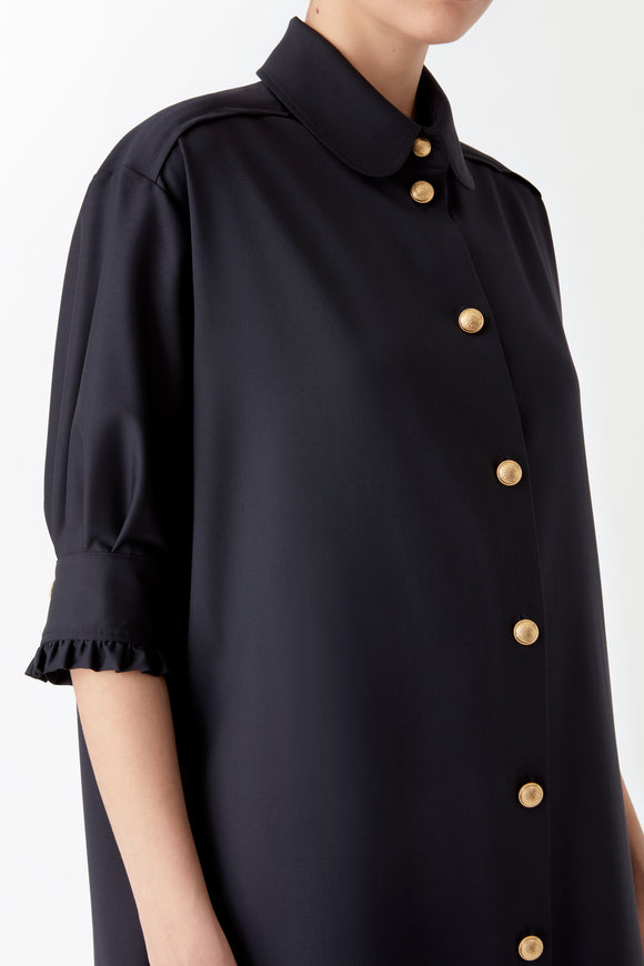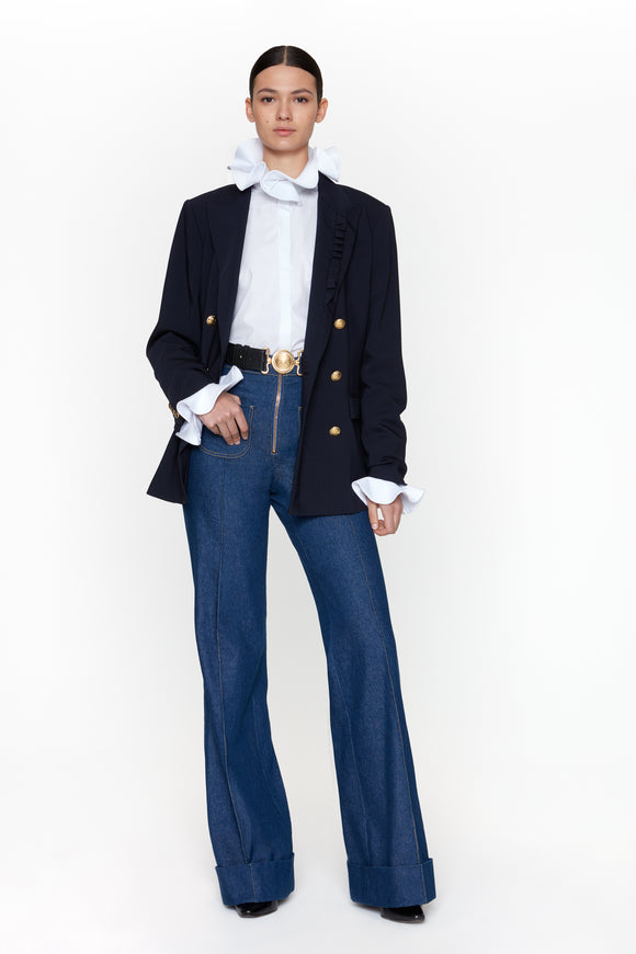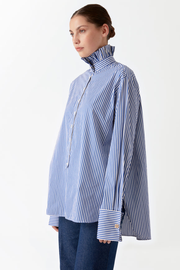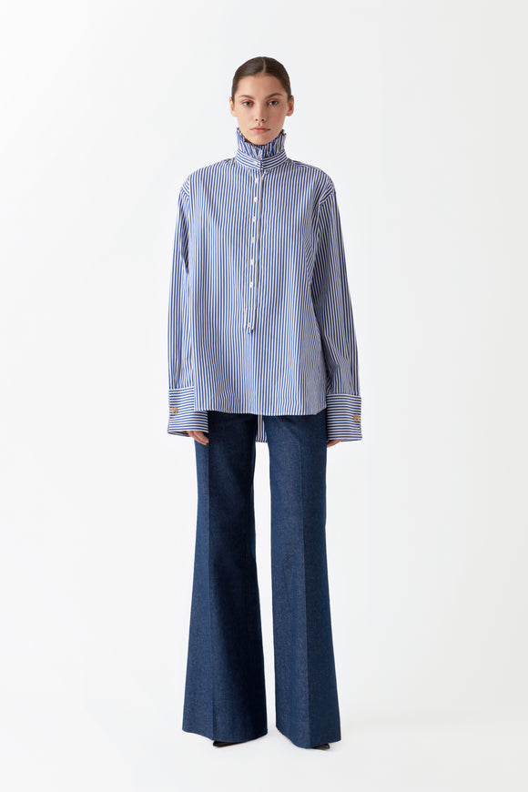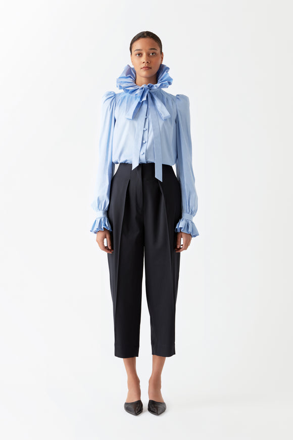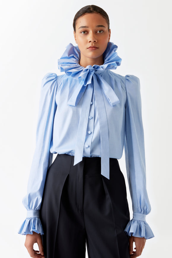 PRUNE - Chemisier col Médicis en popeline de coton bleu ciel