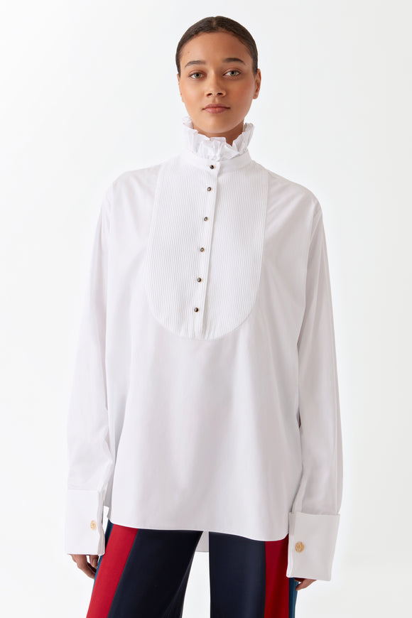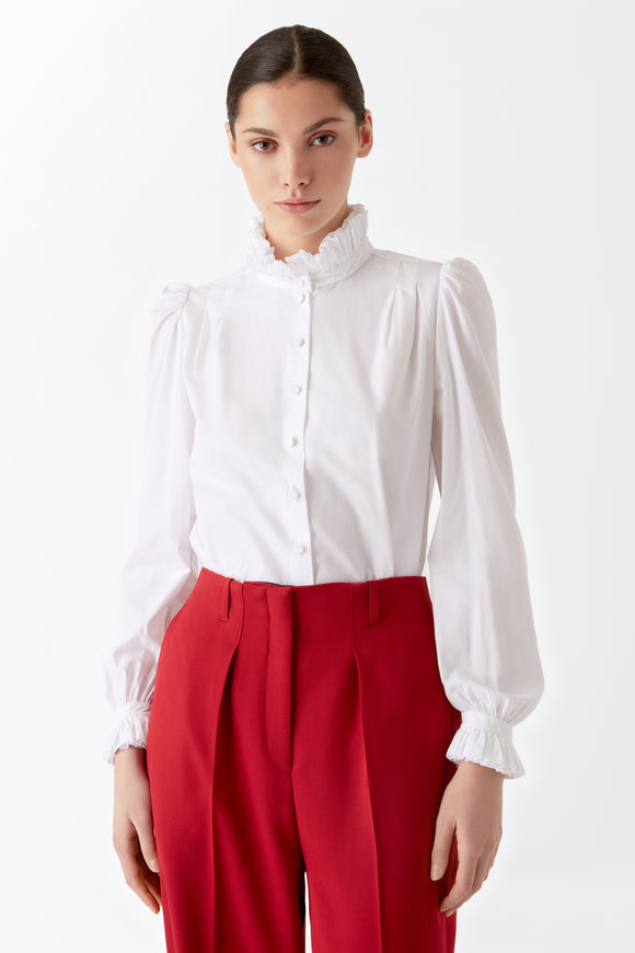 PRUNE - Chemisier blanc col Médicis en popeline de coton