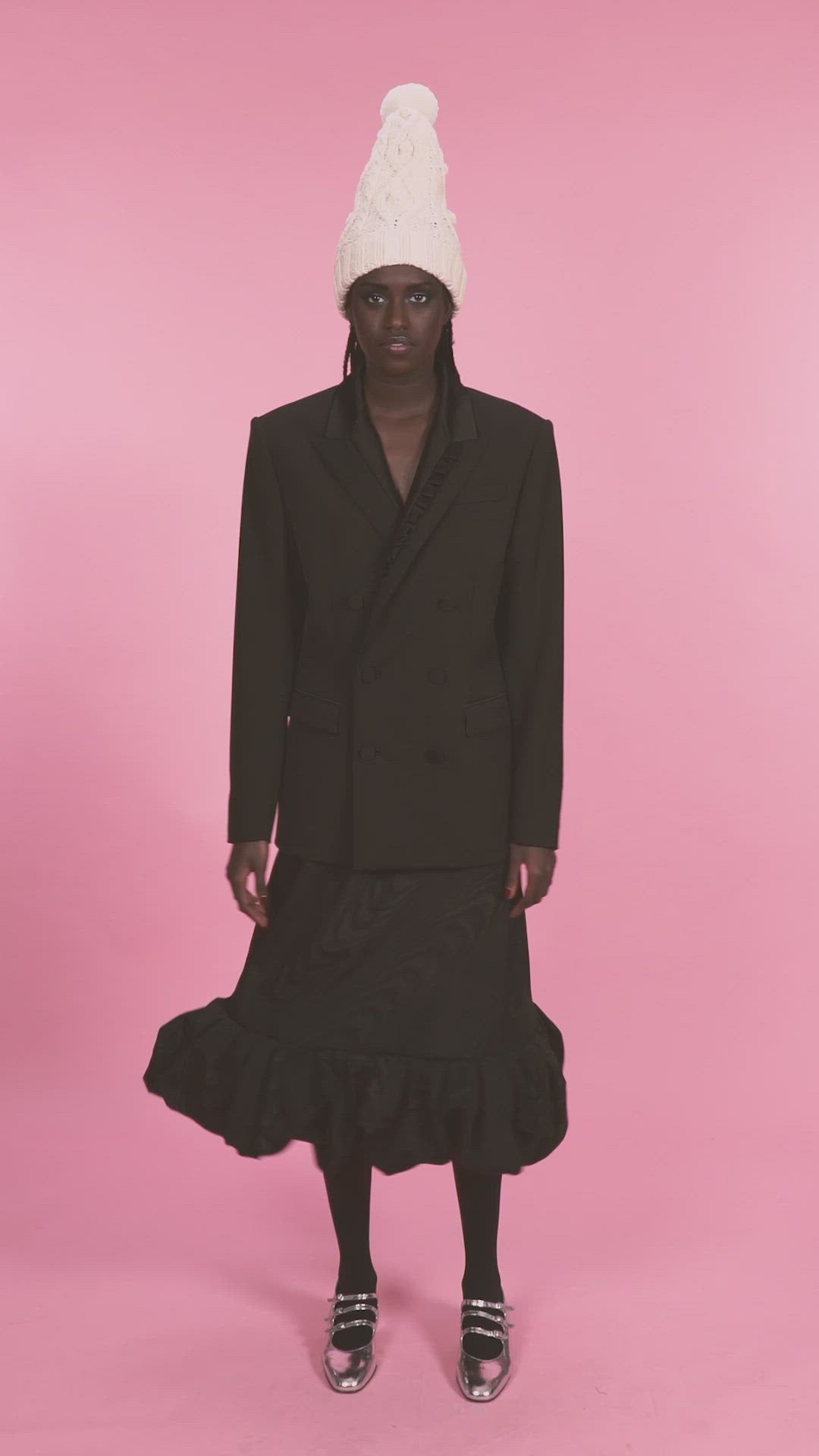 La mannequin mesure 1m79 et porte la veste JOSEFINA en taille FR 36