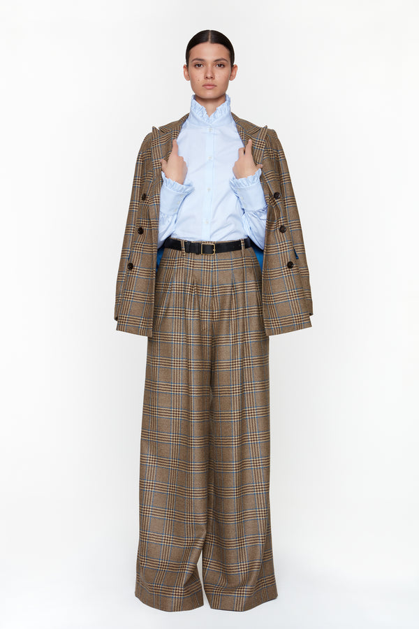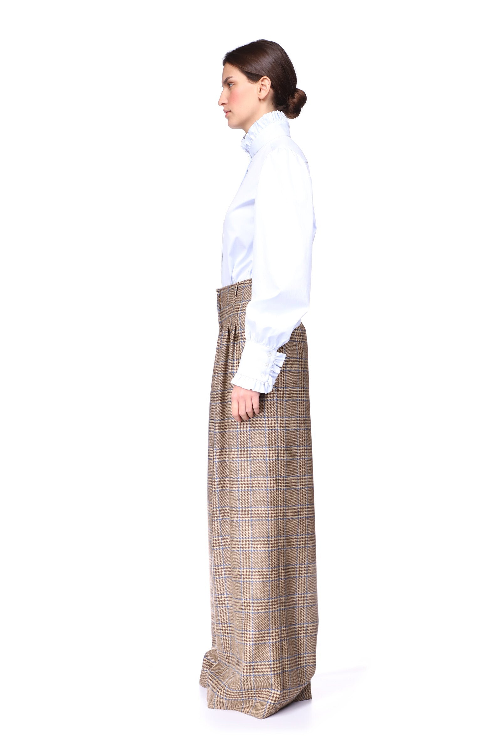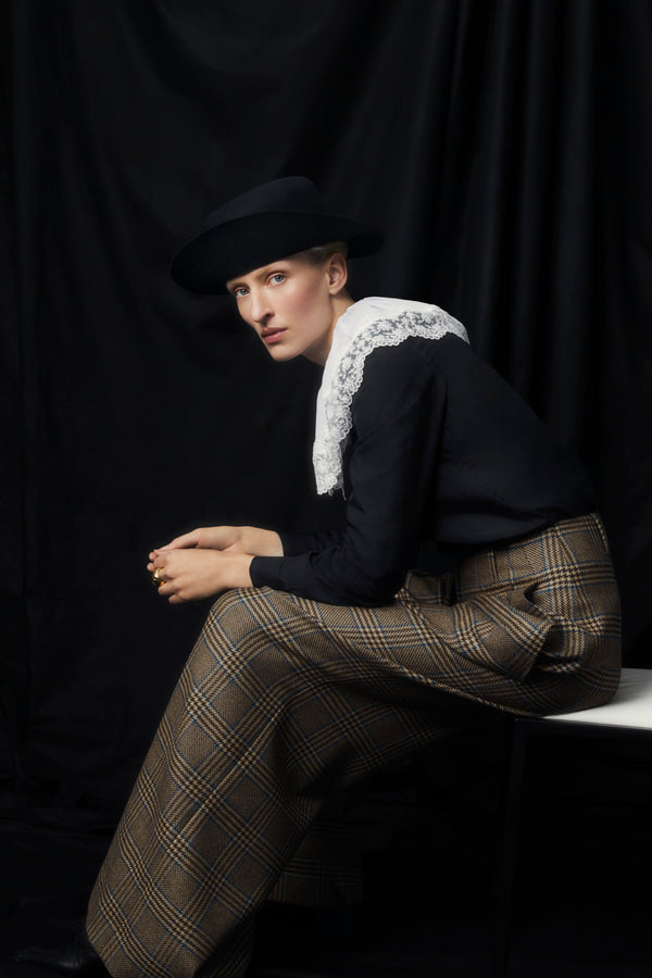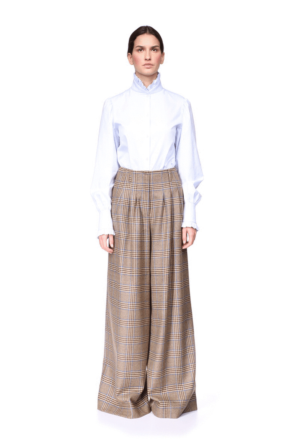 Sonia, un pantalon en laine dans un motif Prince de Galles très élégant. Une pièce exceptionnelle conçue pour vous envelopper de confort au cœur de l'hiver. Sa coupe a été pensée pour allonger la silhouette dans un parfait équilibre. Il se mariera parfaitement à un chemisier.