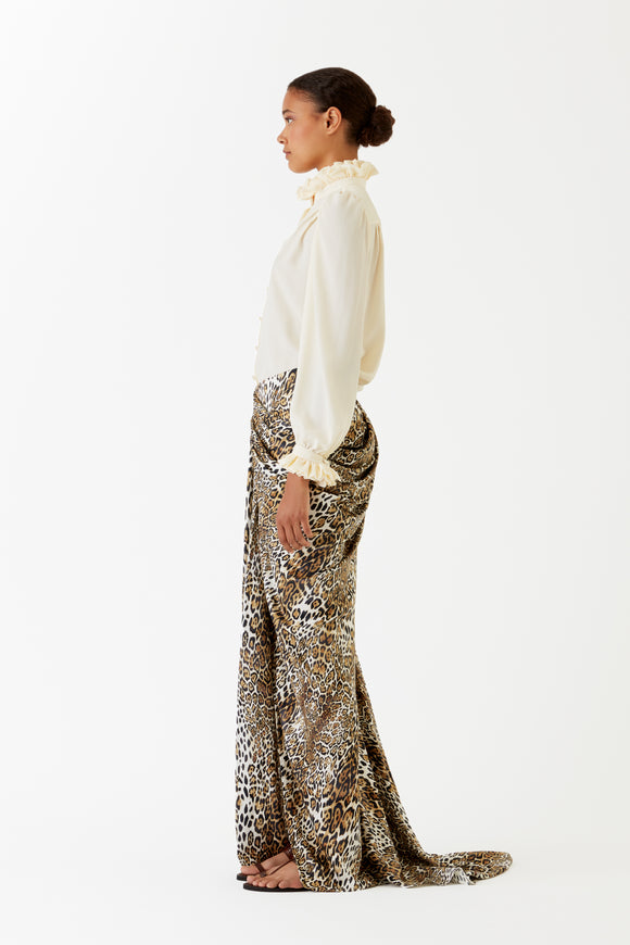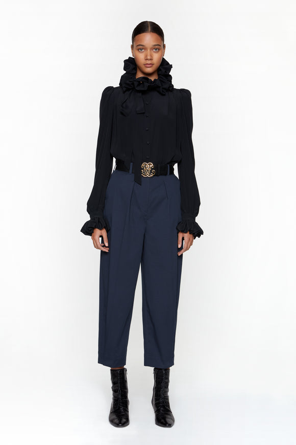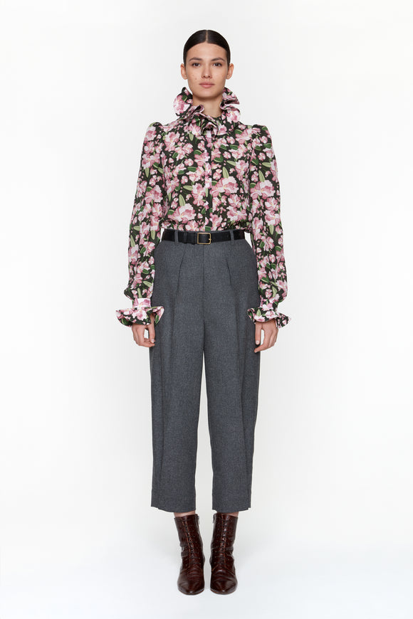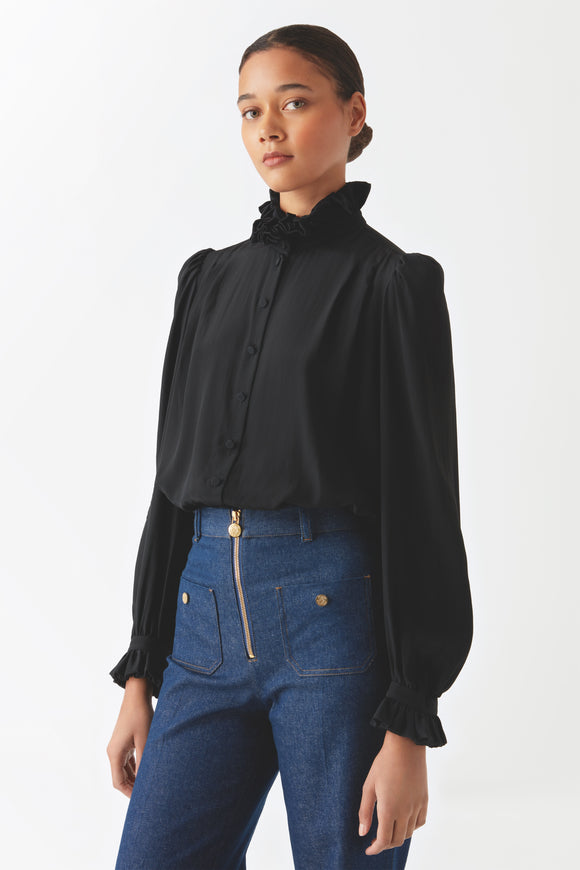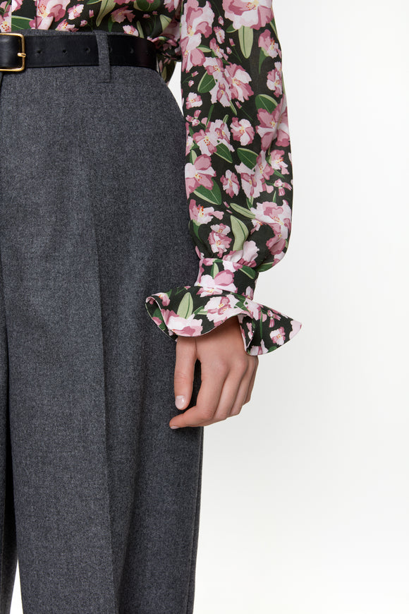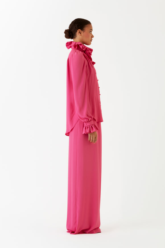 PRUNE - Chemisier col Médicis fuchsia en soie et acétate