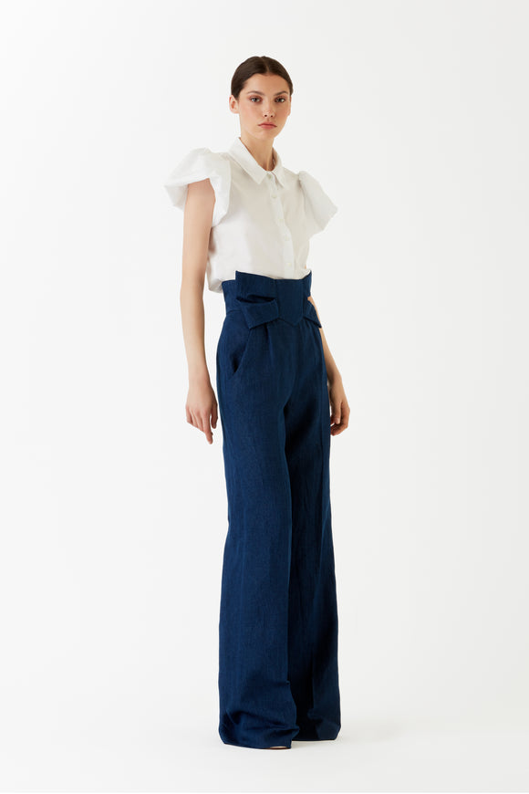 CLARA - Chemisier blanc manches courtes bouillonnées 100% coton