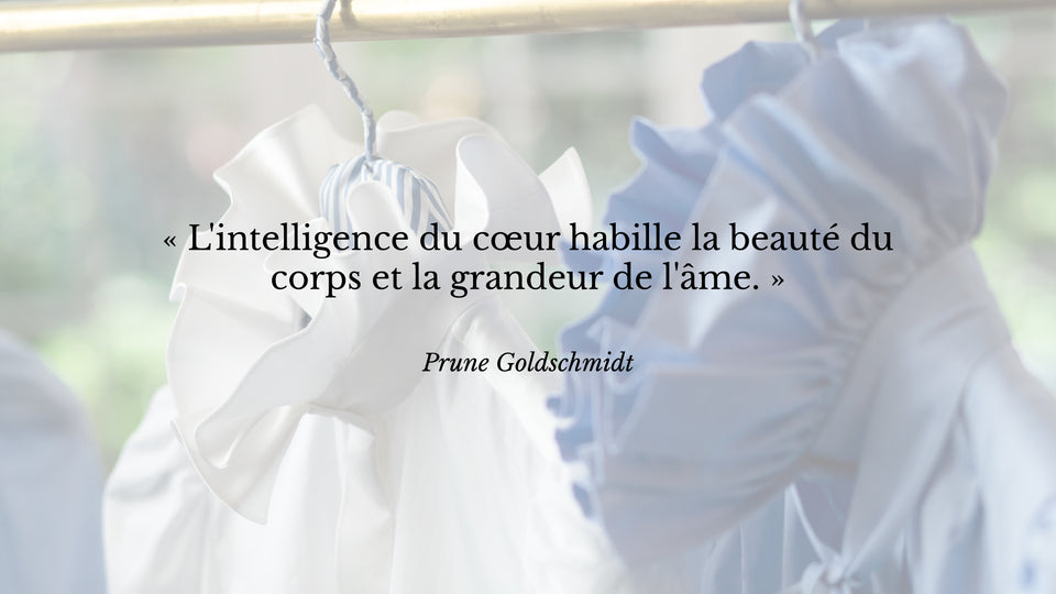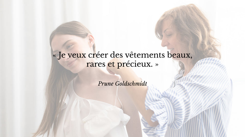 But the accidents of life reshuffle the cards. She needs to rebuild herself. A second marriage and a fifth child later, Prune Goldschmidt reconnected with the textile of family origins and created the brand that bears her name: a return to life for her, a new way of existing, strong, altruistic and generous.