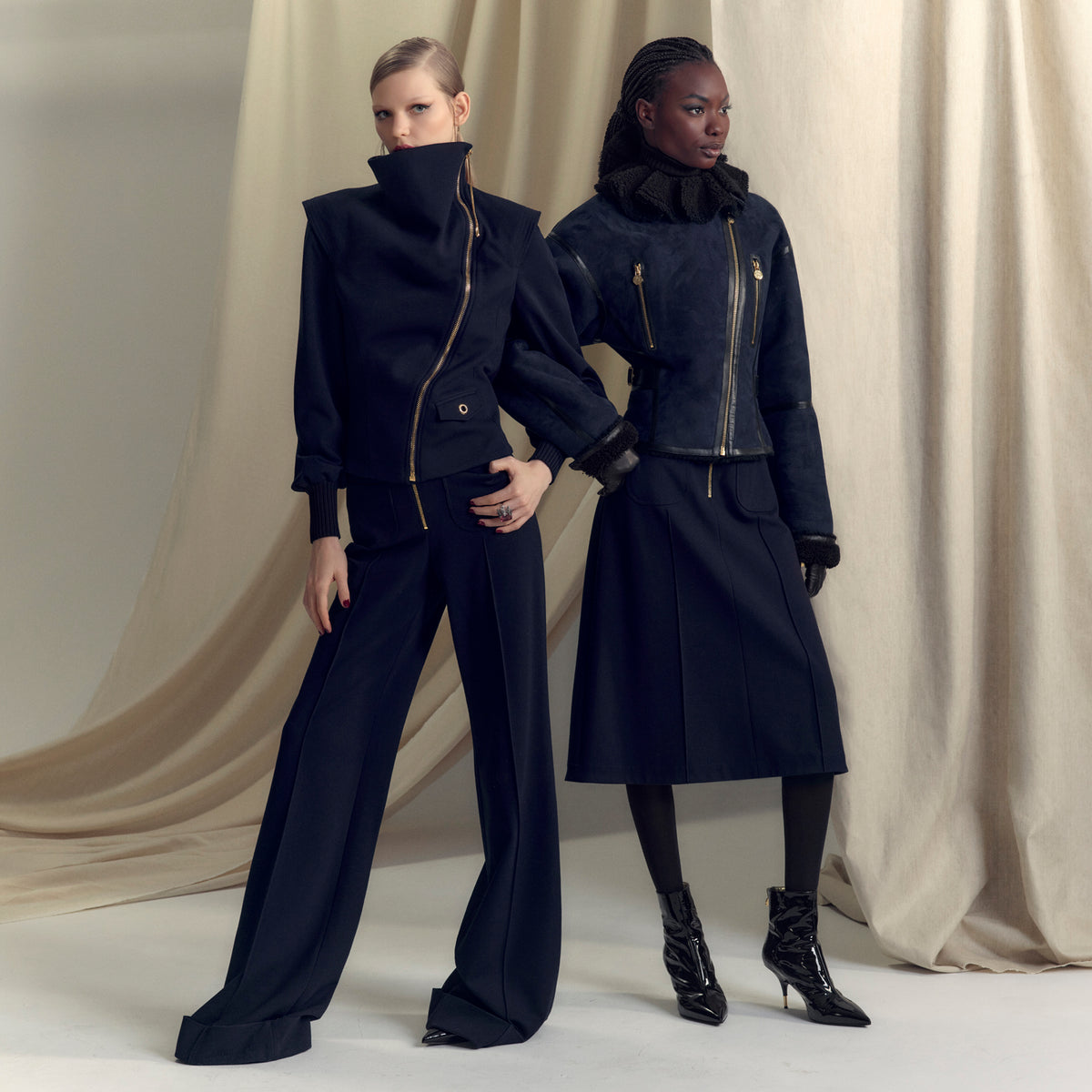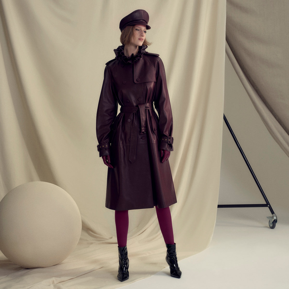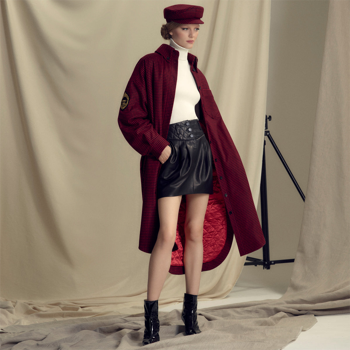 Boldness and impertinence are found in certain prints, in the diversion of bourgeois themes such as a loden which is adorned with a ruffled Medici collar and a leather collar with very “rock'n'roll” accents, or, conversely, a very “biker” perfecto which becomes an oversized cashmere coat, equipped with zips and gold snap buttons… A “Toile de Jouy” print, directly inspired by the bedrooms of little girls who are heirs of the Countess of Ségur, hide proud amazons dressed in Plum Goldschmidt, riding their motorcycles between the landscapes of these idyllic countryside...