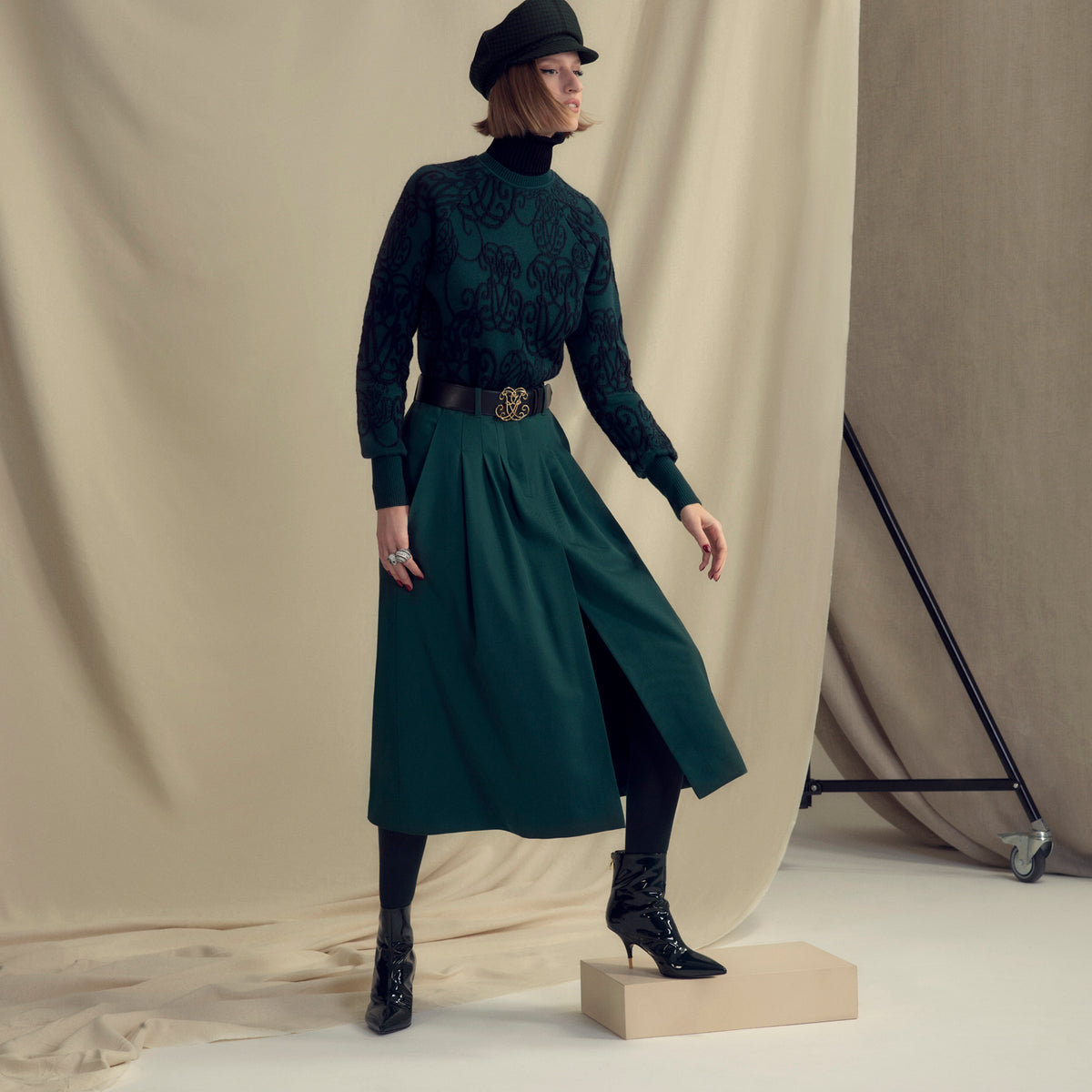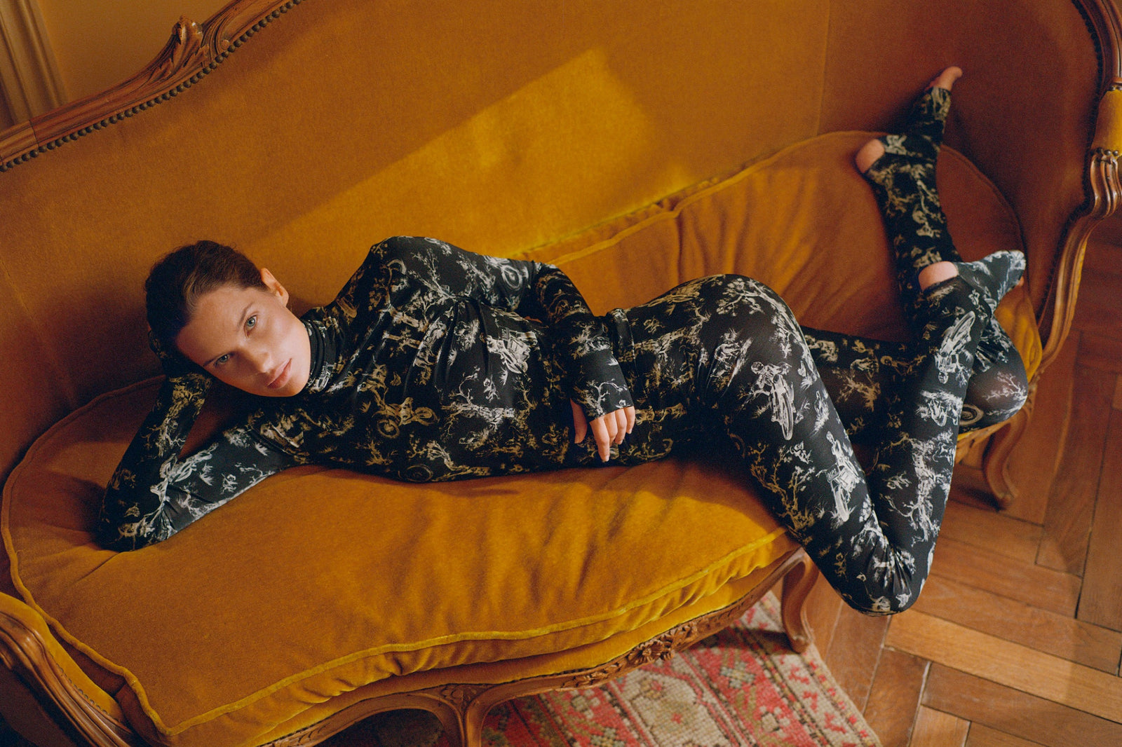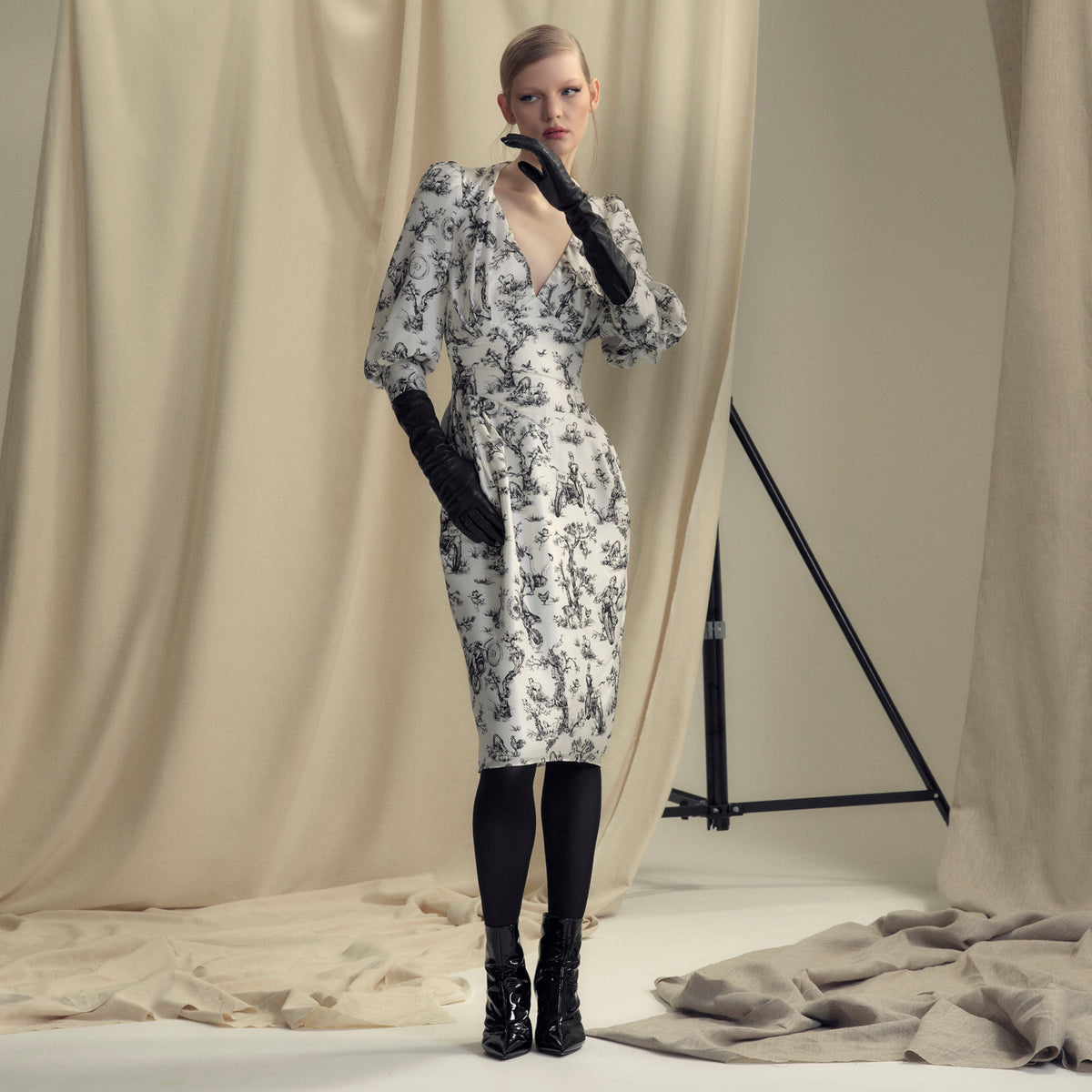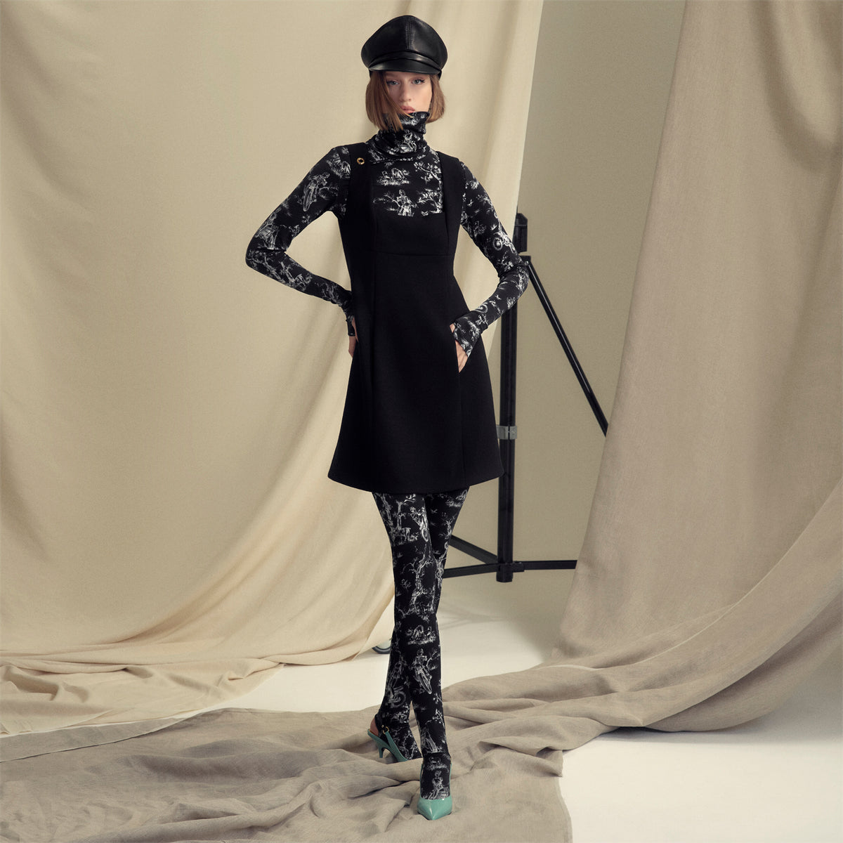 For winter, Prune particularly likes soft and silky materials (silk satin, crepe de chine, satin-backed crepe, soft wool and cashmere cloth, wool gabardine, etc.). The knit gives depth to the collection (jacquards with the monogram in relief, twin sets printed with a total Toile de Jouy look, etc.).