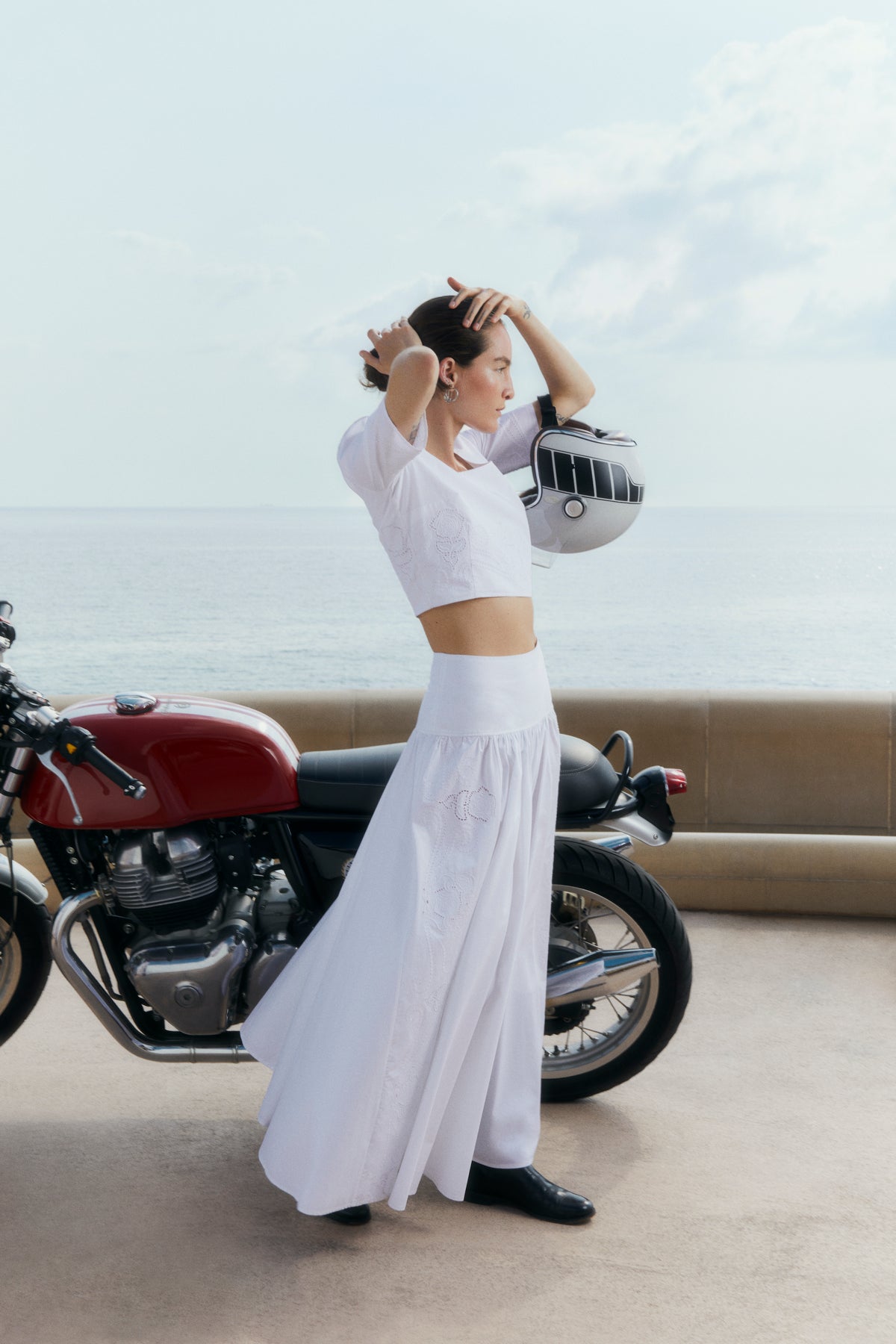 My Spring-Summer 2024 collection is an explosion of joyful color, spice, dahlias and indigo against grounds of immaculate white or sandy beige.